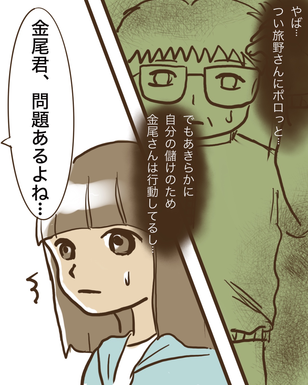 旅野さんと金尾さんが2人で会話している姿も見ていません。
