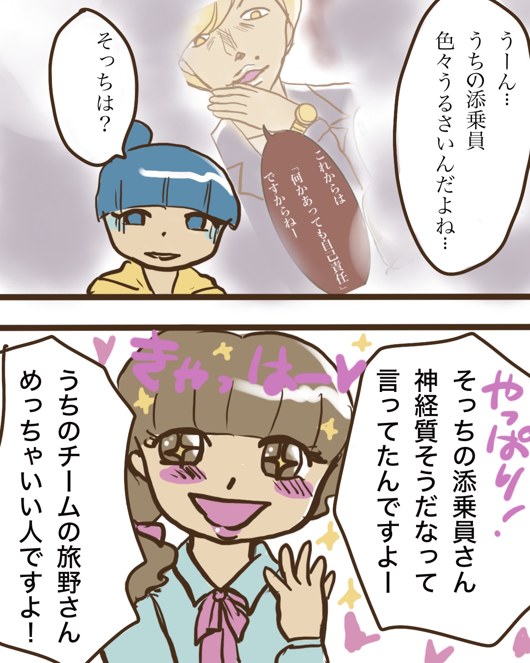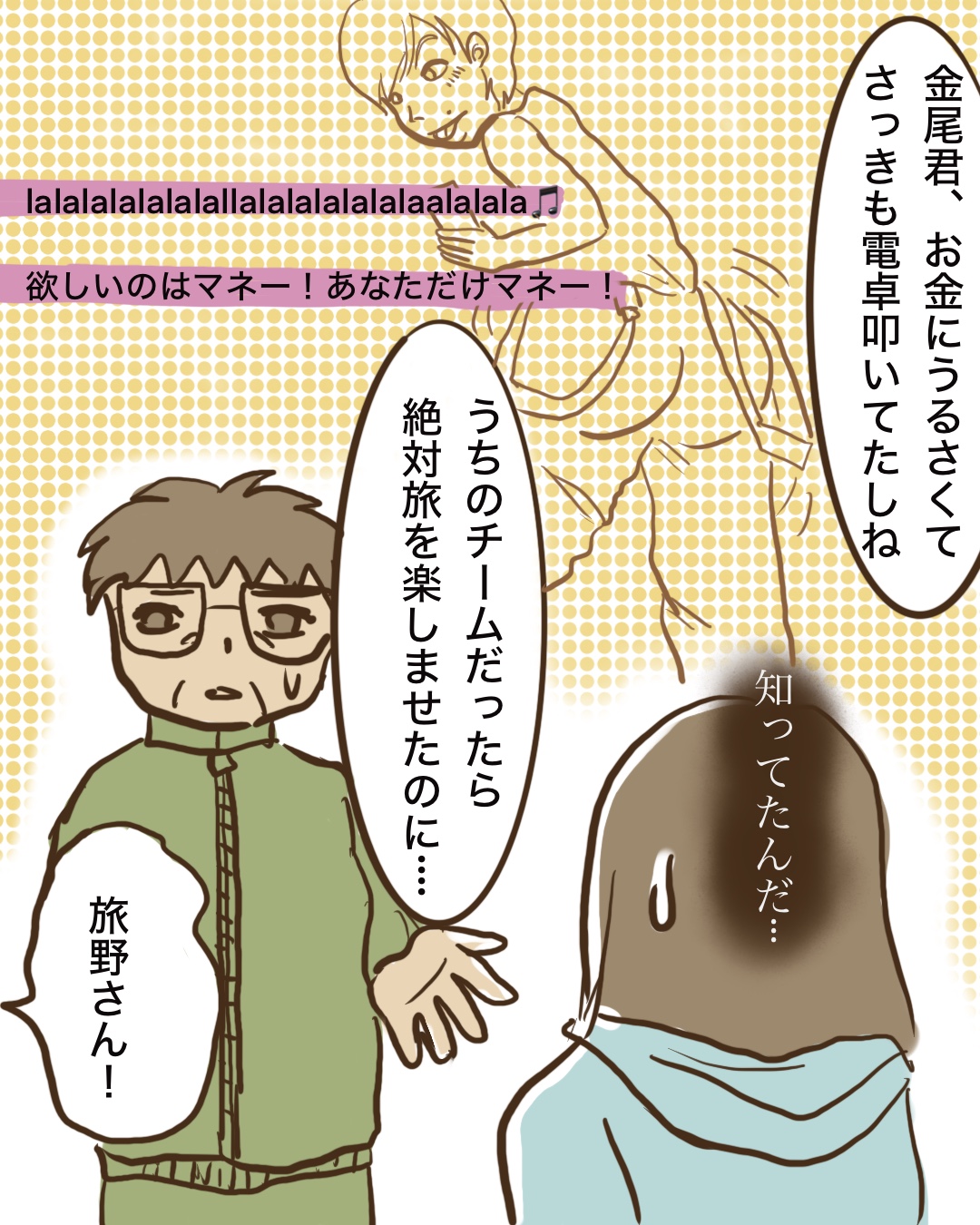 漫画ではサラッと描きましたが、旅野さんも金尾添乗員には怒っている様子でした。しかし、会社?大人?の事情で何も言えないのかな…