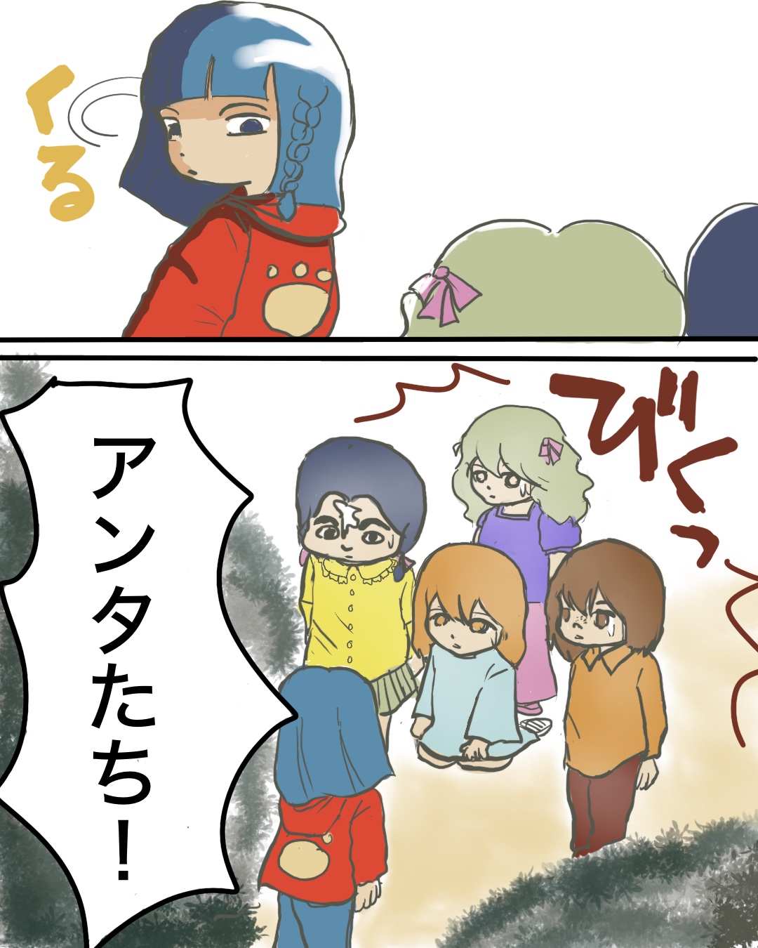 かりんちゃんは難を逃れたけど、青い髪の子がアリを…しかし彼女の中では自慢の話になるみたいで、まぁ良かった?