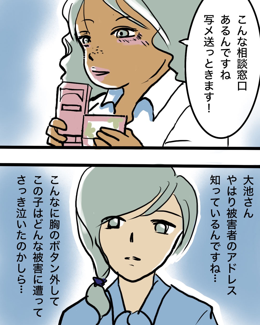 46話 痴漢なんて捕まえるもんじゃない そう思った。 2025.11.26 痴漢なんて捕まえるもんじゃない そう思った。 恋愛, 満員電車, 痴漢被害, 高校生 46話 痴漢なんて捕まえるもんじゃない そう思った。 バスに乗ったサリだけど、やはり乗り物は痴漢被害を思い出してしまうみたいで… 広告 スマホで検索しても出てきますが、被害に遭った時の相談窓口は各市町村でもあると思います。その他、子育て、DV、生きる事の悩みなんかも。(うちの地区は市役所や公民館に電話番号の紙が置いてある) とにかく1人で悩まず、誰かに話した方がいいです。 3人いれば文殊の知恵です。 匿名で全然聞いてくれますよ。 47話に続きます。 12 同じカテゴリの記事 48話 痴漢なんて捕まえるもんじゃない そう思った。 47話 痴漢なんて捕まえるもんじゃない そう思った。 46話 痴漢なんて捕まえるもんじゃない そう思った。 45話 痴漢なんて捕まえるもんじゃない そう思った。 44話 痴漢なんて捕まえるもんじゃない そう思った。 43話 痴漢なんて捕まえるもんじゃない そう思った。 42話 痴漢なんて捕まえるもんじゃない そう思った。 41話 痴漢なんて捕まえるもんじゃない そう思った。 40話 痴漢なんて捕まえるもんじゃない そう思った。 39話 痴漢なんて捕まえるもんじゃない そう思った。 38話 痴漢なんて捕まえるもんじゃない そう思った。 37話 痴漢なんて捕まえるもんじゃない そう思った。 36話 痴漢なんて捕まえるもんじゃない そう思った。 35話 痴漢なんて捕まえるもんじゃない そう思った。 34話 痴漢なんて捕まえるもんじゃない そう思った。 33話 痴漢なんて捕まえるもんじゃない そう思った。 32話 痴漢なんて捕まえるもんじゃない そう思った。 31話 痴漢なんて捕まえるもんじゃない そう思った。 30話 痴漢なんて捕まえるもんじゃない そう思った。 29話 痴漢なんて捕まえるもんじゃない そう思った。 28話 痴漢なんて捕まえるもんじゃない そう思った。 27話 痴漢なんて捕まえるもんじゃない そう思った。 26話 痴漢なんて捕まえるもんじゃない そう思った。 25話 痴漢なんて捕まえるもんじゃない そう思った。 24話 痴漢なんて捕まえるもんじゃない そう思った。 23話 痴漢なんて捕まえるもんじゃない そう思った。 22話 痴漢なんて捕まえるもんじゃない そう思った。 21話 痴漢なんて捕まえるもんじゃない そう思った。 20話 痴漢なんて捕まえるもんじゃない そう思った。 19話 痴漢なんて捕まえるもんじゃない そう思った。 18話 痴漢なんて捕まえるもんじゃない そう思った。 17話 痴漢なんて捕まえるもんじゃない そう思った。 16話 痴漢なんて捕まえるもんじゃない そう思った。 15話 痴漢なんて捕まえるもんじゃない そう思った。 14話 痴漢なんて捕まえるもんじゃない そう思った。 13話 痴漢なんて捕まえるもんじゃない そう思った。 12話 痴漢なんて捕まえるもんじゃない そう思った。 11話 痴漢なんて捕まえるもんじゃない そう思った。 10話 痴漢なんて捕まえるもんじゃない そう思った。 9話 痴漢なんて捕まえるもんじゃない そう思った。 8話 痴漢なんて捕まえるもんじゃない そう思った。 7話 痴漢なんて捕まえるもんじゃない そう思った。 6話 痴漢なんて捕まえるもんじゃない そう思った。 5話 痴漢なんて捕まえるもんじゃない そう思った。 4話 痴漢なんて捕まえるもんじゃない そう思った。 3話 痴漢なんて捕まえるもんじゃない そう思った。 2話 痴漢なんて捕まえるもんじゃない そう思った。 1話 痴漢なんて捕まえるもんじゃない そう思った。 前の記事 おとんと私【きのこ狩りで私が見たものは】 2025.11.24 次の記事 47話 イタリア旅行でハズレ添乗員に当選しました 2025.11.30 アプリなら通知ですぐ読める! NAPBIZブログ