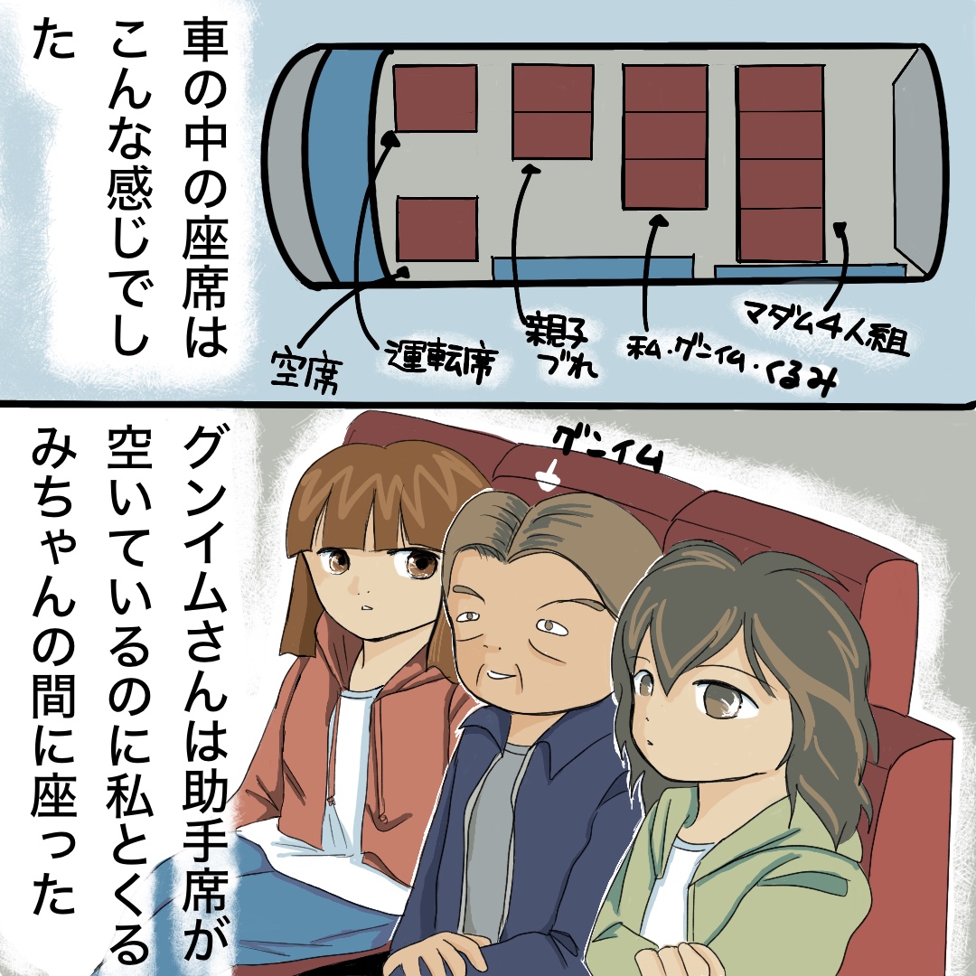 係員さん(グンイムさん)が私とくるみちゃんの間に座った時点でおかしいですよね。