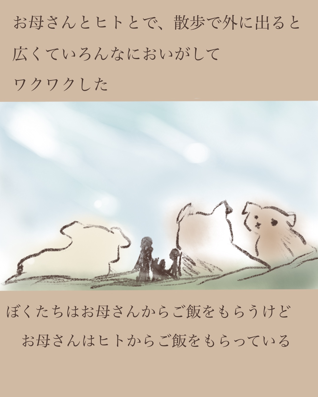 うちで飼っていた犬をもとにした話、始まります。少し悲しい場面もありますが、創作も含んでいますのでフィクションてしてご覧下さい。