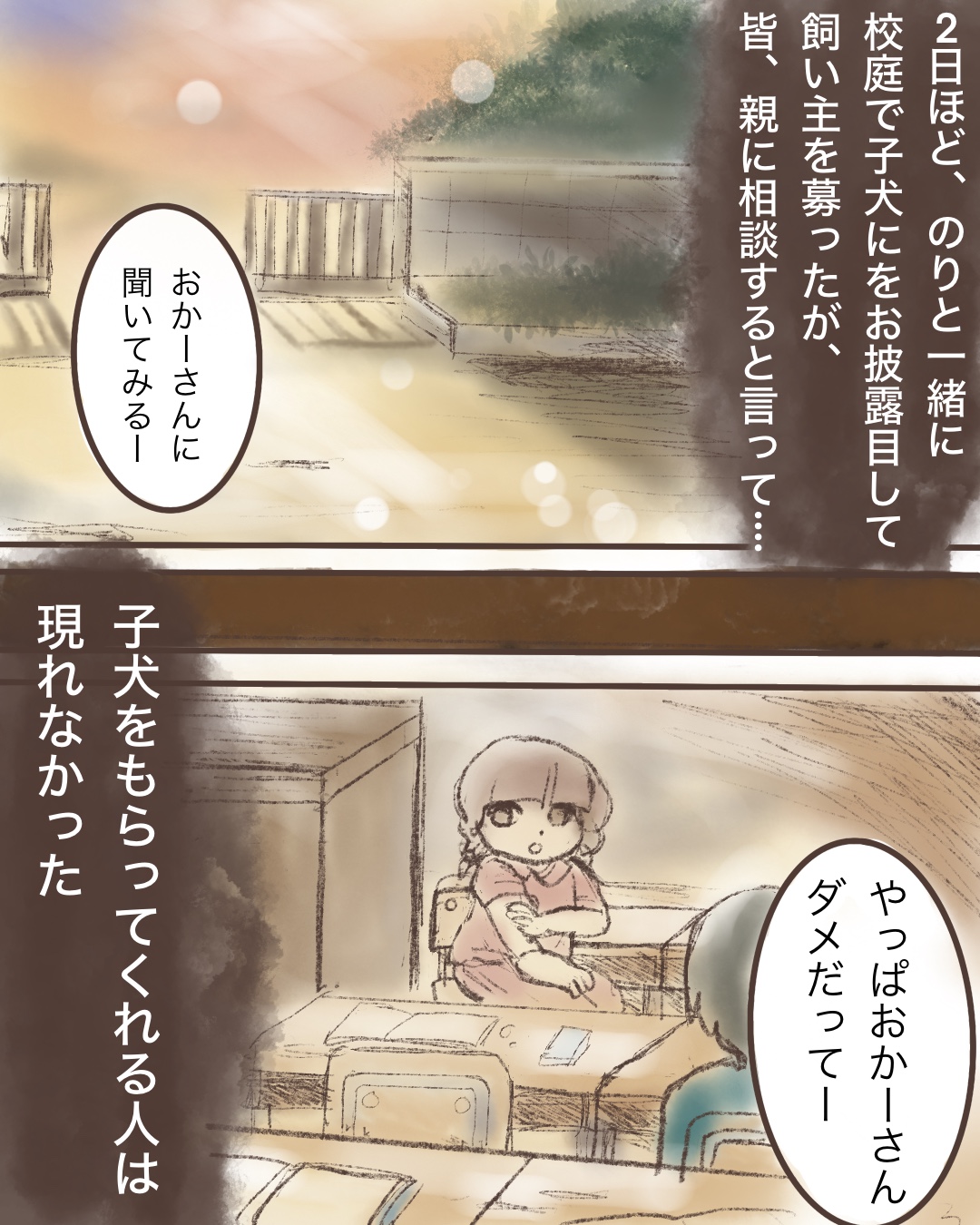 のりちゃんと子犬の引き取り手を探してみましたが、もらってくれる人は見つからず…教室で大々的に里親募ったりもしましたが…やはり難しい。