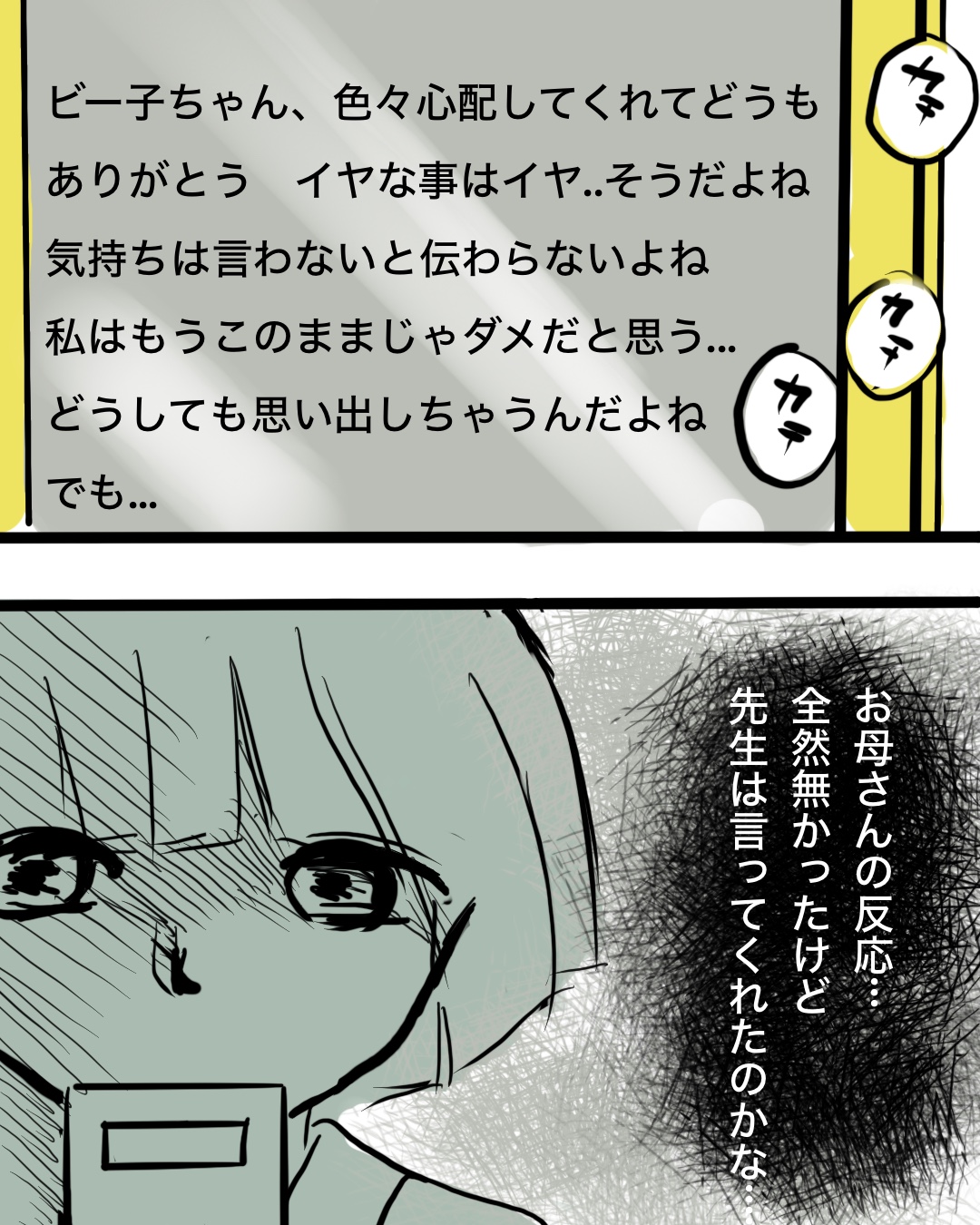 被害を母親に言えないサリ、担任の先生に相談したみたいだけど、母親はそれについての反応は無し…